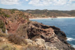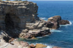 Von hier aus führt ein unbefestigter Weg dicht an der Abbruchkannte der Küste entlang. In kurzen Abständen sind Aussichtspunkte zum Teil mit Treppen und Plattformen zu finden, die immer wieder Einblicke in neue Buchten und auch in die Geologie der Gegend bieten. Auch wenn der Weg nur mit Vorsicht zu befahren ist und wir jede Menge Geschaukel in Kauf nehmen müssen, hat sich die Rundfahrt in jedem Fall gelohnt.