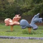 San Daniele del Friuli ist vor allem bekannt wegen des hier hergestellten Schinkens. Hier haben sogar die Wippetiere auf dem Kinderspielplatz eine eintsprechende Form. Leider konnte nur das geistige Auge die besondere Aussicht auf dem Panoramaweg erfassen. Lebhaftes Zeugnis von der Farbenpracht und den Bildern, mit denen im Mitelater das Kircheninnere gestaltet war, gibt die Chiesa Sant’Antonio Abate.