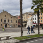 Als wir nach dem Mittagessen in Portogruaro eingetroffen sind, war der Wochenmarkt wohl gerade zu Ende. Das führte dazu, dass die Stadt fast menschenleer und auch weitgehend frei von Autos war. Allerdings war auch die Stadtreinigung intensiv damit beschäftigt die Müllberge vor allem an Verpackungsmaterial zu entfernen, das die Marktstände zurückgelassen hatten.