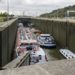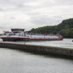 Bis zur Mittagszeit beobachten wir den Betrieb einer der Großschleusen bei Lanaye, die dafür sorgen, dass es eine Verbindung zwischen dem Canal Albert und der Maas gibt. Es ist faszinierend zu sehen, wie Schiffe von Maastricht kommend direkt nach der Schleusung eine 180 Grad Kurve fahren, um in den Canal Albert in Richtung Antwerpen zu gelangen.